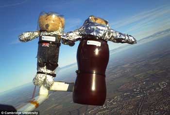 學(xué)生們給泰迪熊穿的太空服也是精心研制的結(jié)果,能夠經(jīng)受零下53攝氏度的低溫,以保證泰迪熊和攜帶的儀器在高空正常工作。此外,學(xué)生們還在玩具上安裝了溫度傳感器,地面可通過筆記本電腦實(shí)時(shí)監(jiān)控。