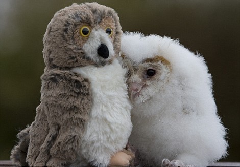 據(jù)英國《每日郵報(bào)》報(bào)道,一只僅有數(shù)周大的谷倉貓頭鷹孤兒與一個貓頭鷹填充玩具成了好朋友。