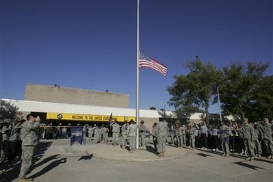 奧巴馬并下令即日起到11日退伍軍人節(jié)為止,白宮和其它聯(lián)邦機(jī)構(gòu)降半旗向受難者致哀。他說(shuō),這是對(duì)那些正準(zhǔn)備為國(guó)家冒生命危險(xiǎn)卻喪命的人的最起碼敬意。