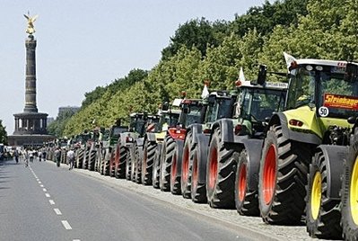 據(jù)香港《文匯報(bào)》報(bào)道,在法國,多達(dá)1.2萬名奶農(nóng)封鎖全國81家乳制品加工廠入口、德國6000名奶農(nóng)駕駛700部拖拉機(jī)到柏林示威、1000名來自法、德、比利時(shí)等10國的奶農(nóng)則在歐盟總部布魯塞爾堵塞道路。雖然法國政府任命專員調(diào)停奶農(nóng)及加工商,但工會(huì)揚(yáng)言要將示威浪潮擴(kuò)展到整片歐洲大陸。