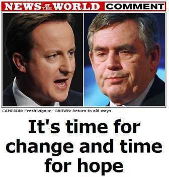 該報說,經(jīng)過深思熟慮,《世界新聞報》相信卡梅倫和他的保守黨應當被給予執(zhí)政的機會,“眼前,他們(保守黨)寄托著我們對光明、合理、安全和更有榮譽的未來!