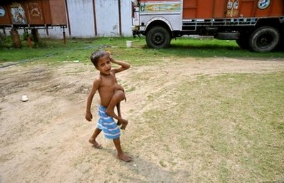 中新網(wǎng)3月11日電 據(jù)外電報道,印度一名出生即長有4支胳膊與4條腿的7歲男孩庫馬爾,被當?shù)睾芏嘤《冉掏疆斪诮膛枷癯绨。而他的父親則表示很不舒服,他想要的就是給庫馬爾做一次手術(shù),讓他恢復正常人身。