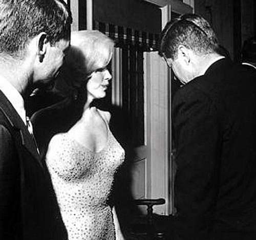 1962年5月19日,為慶?夏岬峡偨y(tǒng)即將到來(lái)的生日,瑪麗蓮-夢(mèng)露身穿綴滿(mǎn)亮片的露背晚禮服,在紐約麥迪遜花園廣場(chǎng)獻(xiàn)唱了一首甜蜜的《總統(tǒng)先生,生日快樂(lè)》。演唱結(jié)束后,白宮攝影師塞西爾-斯托頓抓拍到一張瑪麗蓮夢(mèng)露與肯尼迪兄弟的合影。