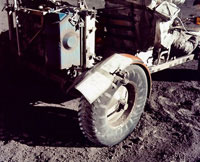 眾所周知,月球表面都被厚厚的月塵覆蓋,美國(guó)宇航員拍攝了很多他們?cè)谠虑蛏狭粝碌哪_印。月球和火星異,F(xiàn)象研究專(zhuān)家約瑟夫·斯金波對(duì)這些證據(jù)一直心存質(zhì)疑。從美國(guó)宇航員的照片上看,他們的月球車(chē)停靠在登陸艙很遠(yuǎn)的地方,圖片上沒(méi)有車(chē)轍痕跡,就好像那輛登陸車(chē)是從太空艙飛過(guò)去的!拔覀儺(dāng)然可以假設(shè)月球表面十分堅(jiān)硬,不足以讓登陸車(chē)留下痕跡?墒,在登陸車(chē)旁邊卻有很多腳印,甚至在登陸車(chē)的下面也能看到!