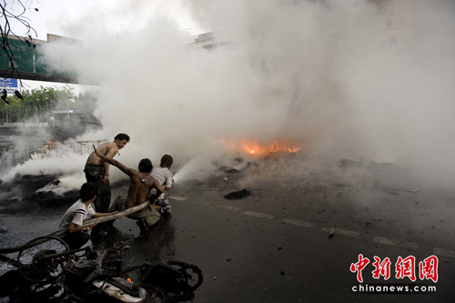 5月13日晚,泰國(guó)軍方封鎖紅衫軍示威地點(diǎn),試圖結(jié)束示威活動(dòng)。雙方因此發(fā)生嚴(yán)重暴力沖突,不斷造成人員傷亡。