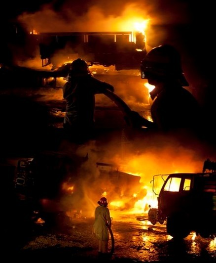 武裝分子先使用槍支及手榴彈等武器,對車隊(duì)開火,打死7人,造成另外7人受傷。隨后,武裝分子縱火燒毀車輛,一共有10多輛車被付之一炬。目擊者稱,大約有20個(gè)集裝箱起火燃燒。由于輪胎燃燒,油罐起火,現(xiàn)場發(fā)生一系列爆炸。