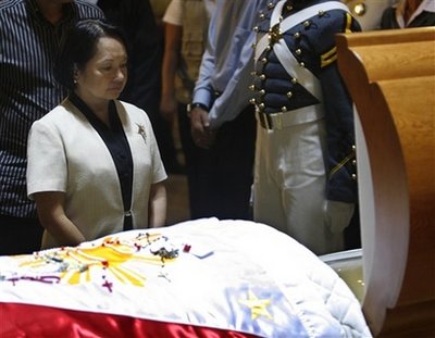 菲律賓總統(tǒng)阿羅約夫人也有出席,逗留了約10分鐘。有1000名官員、外國使節(jié)和商界人士參加安息彌撒,阿基諾夫人的女兒向到來的人士致謝。