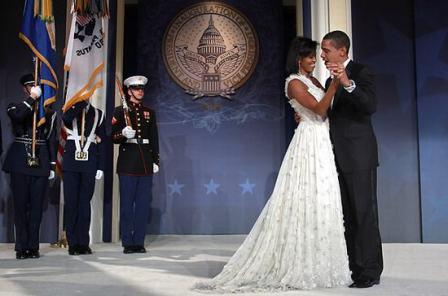 據(jù)英國路透社報道 奧巴馬就職典禮后的舞會要比宣誓儀式進(jìn)行得順利一些。美國新任總統(tǒng)奧巴馬之前一直為自己的舞技而苦惱,他在當(dāng)晚的10場舞會中,盡力避免踩到自己妻子的腳趾,但妻子的長長裙擺還是不斷給他制造了麻煩。