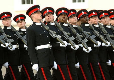 桑德赫斯特皇家軍事學院學員在進行隊列訓練。