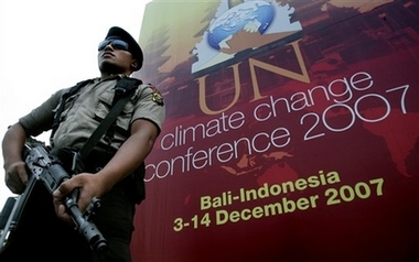 中新網(wǎng)12月3日電 綜合報(bào)道,2007年聯(lián)合國(guó)氣候變化大會(huì)從3日起在印度尼西亞巴厘島召開(kāi),會(huì)期為12天。來(lái)自190多個(gè)國(guó)家和地區(qū)的領(lǐng)導(dǎo)人和代表2日聚會(huì)巴厘島,準(zhǔn)備就全球氣候變暖和削減廢氣排放問(wèn)題展開(kāi)磋商,力爭(zhēng)在2009年前達(dá)成相關(guān)協(xié)議。