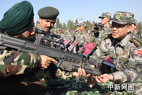 與此同時,兩國軍隊之間也在不斷地進(jìn)行實質(zhì)性的交流。海上,二00三年和二00五年,兩國海軍分別在上海附近的東海海域和印度洋北部海域舉行聯(lián)合搜救演習(xí);陸上,致力于建立和平、友好、安寧的邊界,兩國邊防部隊之間經(jīng)常文體聯(lián)誼及會晤會談。二00四年,兩國軍隊在西藏地區(qū)舉行聯(lián)合登山活動。兩國還互派觀摩團(tuán)觀摩對方的軍事演習(xí),如印度曾邀請中國軍人觀摩他們的“沙漠打擊”演習(xí),而中國軍隊則邀請印度軍人觀摩了四次演習(xí)。另外,在人員培訓(xùn)、院校交流方面,也都取得了突破性進(jìn)展。