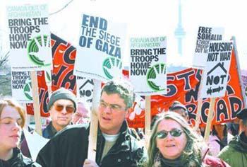 加拿大今天也出現(xiàn)示威活動。當?shù)仉娨暸_報道,多倫多大約有1000人抗議議會上周作出的延長在阿富汗駐軍的決定。