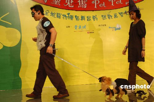 香港商場(chǎng)舉辦萬(wàn)圣節(jié)鬼馬寵物表演(2)