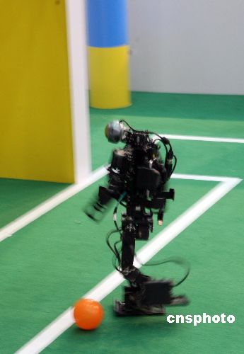11月14日,海峽兩岸機器人足球賽在重慶大學鳴鑼開賽,來自國際科技大學、上海交通大學、清華大學、華南理工大學、重慶大學、成功大學、中正大學、淡江大學、長庚大學、高雄第一科技大學等海峽兩岸知名高校的機器人,將分為人形機器人和中型機器人兩種組別進行比賽。據(jù)悉,比賽是由重慶大學自動化學院、中國自動化學會機器人競賽委員會主辦。中新社發(fā) 郭晉嘉 攝
