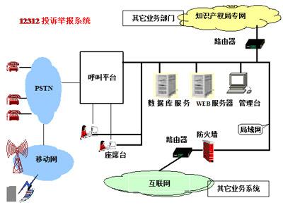 保護(hù)知識產(chǎn)權(quán)12312呼叫中心系統(tǒng)的整體結(jié)構(gòu)如下圖所示: