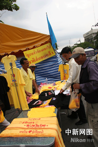 游客在選購示威服裝 顧時宏 攝