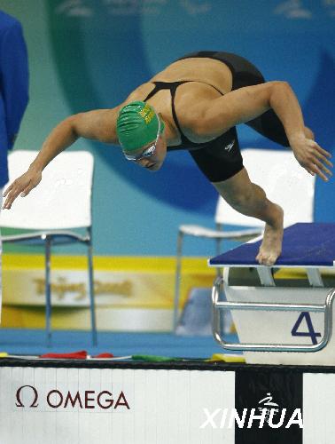南非著名“獨腿美人魚”納塔莉•杜托伊特同樣在“水立方”成就了自己的金牌夢想。這位“雙奧戰(zhàn)士”在女子100米蝶泳-S9級、女子100米自由泳-S9級、女子200米個人混合泳-SM9級、女子400米自由泳-S9級和女子50米自由泳-S9級中摘得五金,并列北京殘奧會奪金王。