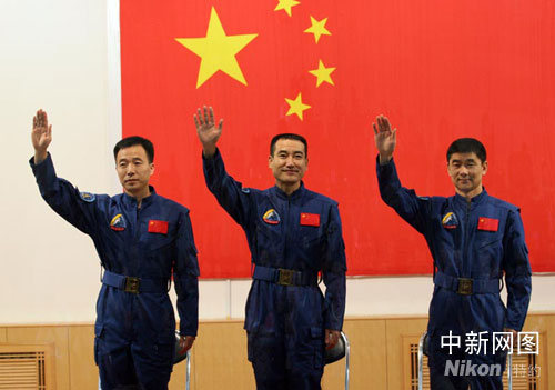 中國“神舟七號(hào)”航天員乘組24日下午在酒泉衛(wèi)星中心與媒體見面。翟志剛、劉伯明、景海鵬組成飛行乘組執(zhí)行“神舟七號(hào)”載人航天飛行任務(wù)。