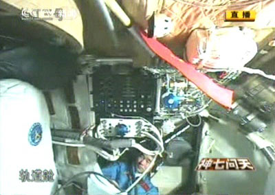 北京時(shí)間九月二十六日上午,“神舟”七號(hào)航天員翟志剛和劉伯明開始在飛船軌道艙進(jìn)行軌道艙狀態(tài)檢查和艙外航天服的組裝與測(cè)試等工作。