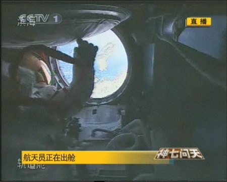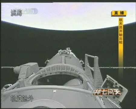 9月27日,航天員開(kāi)始出艙指令已經(jīng)下達(dá),神七航天出艙活動(dòng)開(kāi)始。