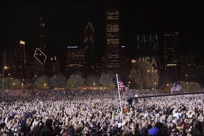 奧巴馬在選舉結果揭曉以后發(fā)表了以“美國的變革”為主題的獲勝演說。他說,“美國的變革時代已到來”。