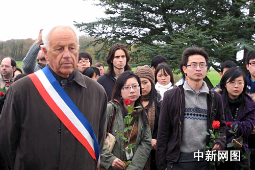 中新網(wǎng)巴黎11月15日電 (黃滟稀) 為紀念一戰(zhàn)結(jié)束九十周年,緬懷為法捐軀華工先輩,近百名旅法華人、留法中國學生以及法國友人15日在法國北部諾萊特華工墓園舉行了莊重的祭奠儀式。