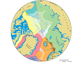 根據(jù)專家們的推測,北極大陸架地區(qū)蘊藏著大約1000億噸石油和天然氣,另外還有無盡的礦物,冰雪融化則會緩解北方海域的導(dǎo)航困難,同時開辟新的運輸航線,經(jīng)濟(jì)潛力非常巨大。為了爭奪北極領(lǐng)土和資源,分割“北極餡餅”,相關(guān)各國紛紛提出主權(quán)要求。目前可以直接進(jìn)入北冰洋的俄羅斯、加拿大、美國、挪威和丹麥5國正在積極爭奪北極的控制權(quán),而表示希望開發(fā)北極大陸架的國家則有20多個。俄美加挪丹5個北極國家今年5月在格陵蘭召開北極問題國際研討會,最后通過聯(lián)合聲明,宣布將在國際法基礎(chǔ)上開展合作,沒有必要制訂新的北冰洋管理制度。