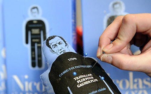 法國一家出版公司將總統(tǒng)薩科齊的肖像制成“巫毒娃娃”,并鼓勵(lì)購買者針刺“薩科齊”。