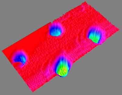 在美國(guó)宇航局網(wǎng)站公布的一幅照片上,位于顯微鏡硅襯底上的4個(gè)土壤顆?瓷先ハ4個(gè)小球,而實(shí)際上每個(gè)顆粒的直徑僅為1微米,相當(dāng)于1米的一百萬(wàn)分之一。這樣的觀測(cè)精細(xì)度只有原子力顯微鏡才能達(dá)到,而且它可以對(duì)顆粒進(jìn)行三維觀測(cè)。