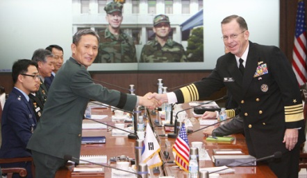 中新網(wǎng)11月6日電 韓聯(lián)社消息,韓國聯(lián)合參謀總長金寬鎮(zhèn)和美國參謀總長邁克爾·馬倫(海軍上將)6日上午在首爾龍山區(qū)國防大樓舉行第29次韓美軍事委員會(huì)(MCM),集中討論了兩國軍事領(lǐng)域里懸而未決的問題。