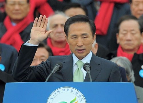 中新網(wǎng)東京2月25日電 李明博25日上午在首爾正式宣誓就任第17屆韓國(guó)總統(tǒng)。李明博在就職典禮上發(fā)表了“團(tuán)結(jié)一致共創(chuàng)未來(lái)發(fā)展之路”的演講,向韓國(guó)民眾和前來(lái)參加此次就職典禮的各國(guó)政要表示感謝。當(dāng)天有數(shù)萬(wàn)人參加了李明博的就職典禮。