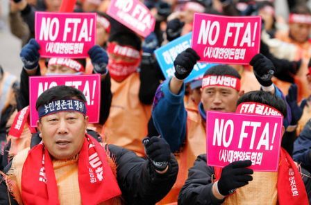 中新網(wǎng)11月26日電 據(jù)星島環(huán)球網(wǎng)報道,近萬名韓國農(nóng)民25日在首爾示威,要求國會否決韓美自由貿(mào)易協(xié)定。韓國民間團(tuán)體此前也舉行過多場示威,抗議韓國政府進(jìn)口美國牛肉,但總統(tǒng)李明博態(tài)度強(qiáng)硬,民眾未能如愿。