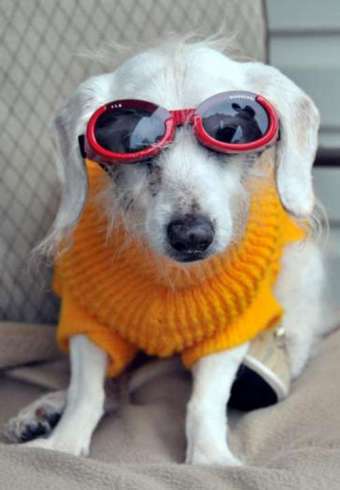 據(jù)香港《大公報(bào)》報(bào)道稱,臘腸犬香奈爾身穿黃色毛衣、戴著紅框太陽眼鏡。它的主人丹尼斯替它接受了這一殊榮。香奈爾曾是紐約的一只救援犬。