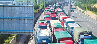 記者在采訪中了解到,很長一段時(shí)間以來,為減輕來自內(nèi)蒙古方向的交通壓力,河北、北京分別在京藏高速220公里處、97公里處等地段設(shè)置了對進(jìn)京大貨車的限流卡口,從而引發(fā)了連鎖反應(yīng):因北京境內(nèi)車輛行駛緩慢而推延至河北境內(nèi)的交通擁堵,因河北境內(nèi)的車輛行駛緩慢而推延至內(nèi)蒙古境內(nèi)的交通擁堵。作為“應(yīng)對之策”,今年下半年以來,內(nèi)蒙古方面也在與河北交界的路段設(shè)置卡口,限制前來運(yùn)煤的車輛入境。