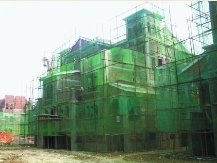 小區(qū)進門處,碩大的工程規(guī)劃圖引起了記者的注意:這個小區(qū)的規(guī)劃是成棟的聯(lián)排別墅,廣告宣傳語標有‘西班牙風格別墅’字樣。小區(qū)內(nèi)建筑工人正在施工。
