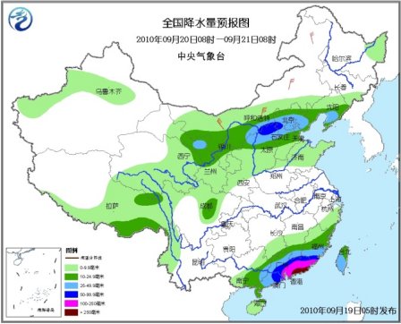 20日08時(shí)至21日08時(shí),新疆沿天山地區(qū)、西藏南部和東部、西北地區(qū)中東部、內(nèi)蒙古西部和中東部偏南地區(qū)、東北地區(qū)南部和東北部、華北、黃淮東北部、四川中北部、云南西部、江南南部、華南大部有小到中雨或陣雨,其中,甘肅河西地區(qū)東部、內(nèi)蒙古河套東部、陜西北部、山西北部、北京、天津北部、河北中北部、遼寧中南部等地的部分地區(qū)有大雨、局地暴雨;福建南部、臺(tái)灣中南部、廣東、江西南部、廣西東部等地有大到暴雨;福建東南部、廣東中東部等地的部分地區(qū)有大暴雨、局部特大暴雨;上述地區(qū)局部并伴有短時(shí)雷雨大風(fēng)或冰雹等強(qiáng)對(duì)流天氣。新疆北部、甘肅西部、寧夏、內(nèi)蒙古大部、華北北部和東部有4~6級(jí)風(fēng),新疆山口地區(qū)風(fēng)力可達(dá)7~9級(jí)。受“凡亞比”影響,東海南部有6~8級(jí)東南風(fēng);臺(tái)灣海峽、南海北部有7~9級(jí)大風(fēng),部分海域風(fēng)力可達(dá)10~11級(jí),臺(tái)風(fēng)中心經(jīng)過(guò)的附近海域有12~13級(jí)大風(fēng);臺(tái)灣以南海域有6~7級(jí)、陣風(fēng)8級(jí)的偏南風(fēng)。渤海有4~5級(jí)增加到6~7級(jí)的東北風(fēng)。