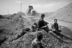 老金在這里住了10多年了。四五年前,家門口的山上還到處覆蓋著青草,F在,只有黑色的煤矸石和被翻出的紅褐色過火石(煤田內部被煤火燒過的石頭),形成連綿不斷的渣堆。