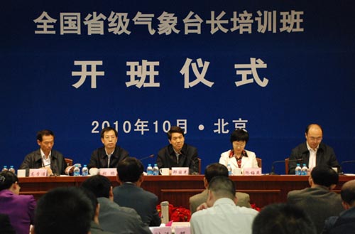 10月11日,全國省級氣象臺長培訓班在京正式開班。中國氣象局黨組書記、局長鄭國光,副局長矯梅燕出席開班儀式。鄭國光在開班儀式上強調(diào),氣象臺長要結(jié)合實際、深入思考,擔負起領(lǐng)導新時期現(xiàn)代氣象預報預測業(yè)務(wù)和服務(wù)的重任。