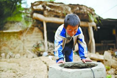 梅川鎮(zhèn)地布尺村15戶人家的蓄水井,因?yàn)榈卣鸪霈F(xiàn)滲漏已近干涸,村民面臨吃水困難 特派記者彭年 攝