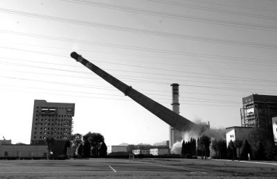 北京近年來不斷壓縮煤炭使用量,圖為熱電▲廠爆破百余米煙囪。(資料圖片)