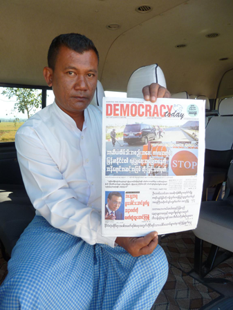 緬甸一份名為Democracy Today的報(bào)紙刊登了李克強(qiáng)總理的署名文章。(新華社記者 桂濤攝)