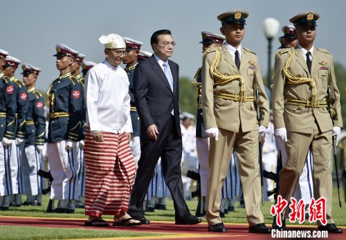 中新網(wǎng)內(nèi)比都11月14日電 (記者 郭金超)緬甸總統(tǒng)吳登盛14日在內(nèi)比都總統(tǒng)府前廣場(chǎng)舉行隆重儀式,歡迎中國(guó)國(guó)務(wù)院總理李克強(qiáng)對(duì)緬甸進(jìn)行正式訪問(wèn)。這是李克強(qiáng)就任總理以來(lái)首次訪問(wèn)緬甸。