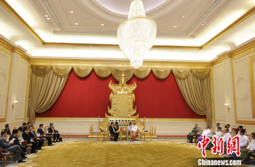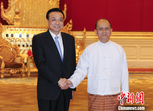 中新網(wǎng)內(nèi)比都11月14日電 (記者 郭金超)李克強(qiáng)總理14日在內(nèi)比都與緬甸總統(tǒng)吳登盛會(huì)談時(shí)說(shuō),中緬“胞波”情誼深厚,愿中緬永做好鄰居、好朋友、好伙伴,中國(guó)政府支持中國(guó)企業(yè)參與緬基礎(chǔ)設(shè)施建設(shè),使更多當(dāng)?shù)孛癖娛芤妗?huì)談后,兩國(guó)領(lǐng)導(dǎo)人見(jiàn)證了經(jīng)貿(mào)、農(nóng)業(yè)、金融、能源等領(lǐng)域合作文件的簽署。