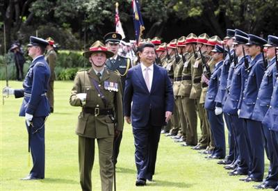 11月20日,國(guó)家主席習(xí)近平在惠靈頓出席新西蘭總督邁特帕里舉行的歡迎儀式。新華社記者 姚大偉 攝