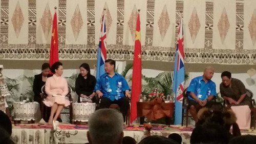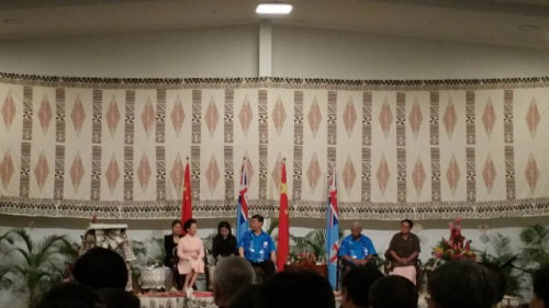 習(xí)大大說完,斐濟(jì)原住民向習(xí)大大夫婦表示感謝。