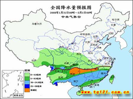 31日08時(shí)至2月1日08時(shí),西藏東部、青海東南部、西北地區(qū)東南部、江漢西部、江南中西部偏北地區(qū)以及西南地區(qū)北部和東部等地陰有小到中雪(雨)或雨夾雪,其中,西藏東南部、云南西北部和東北部以及川西高原南部的部分地區(qū)有大到暴雪。江南南部、華南大部以及西南地區(qū)南部等地陰有小到中雨,其中,貴州、湖南南部、江西中部等地的部分地區(qū)有凍雨,云南南部的部分地區(qū)有大雨。東海南部、臺(tái)灣海峽、南海北部及北部灣有6~8級(jí)偏北風(fēng)。