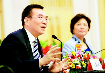 林毅夫夫婦分別來自全國人大北京代表團(tuán)和臺灣代表團(tuán),上午9時,林毅夫在前,陳云英在后,準(zhǔn)時出現(xiàn)在中外記者面前。他們面帶微笑,向記者頻頻點頭致意。