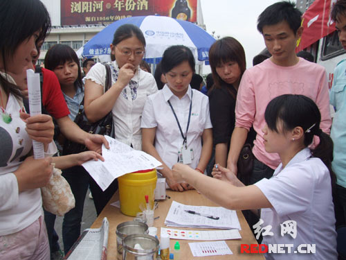 14日,長沙市黃興路步行街中心廣場,祈福、捐款、獻(xiàn)血等多種募捐活動從早到晚幾乎沒有間歇。長沙各大高校、企業(yè)紛紛發(fā)起為災(zāi)區(qū)獻(xiàn)血活動,獻(xiàn)血排出百米長隊(duì) 采血量是往日6倍。晚7時(shí)45分,來自可口可樂選拔出的6位火炬手手持“祥云”火炬與現(xiàn)場數(shù)百長沙市民一同在手腕上綁上黃絲帶、手拿一支獻(xiàn)花、捧起一支蠟燭,在廣場里許下心愿,祈求汶川地震的陰霾盡快散去。