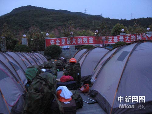 突擊隊(duì)連夜趕赴目的地廣元市,圖今天凌晨一點(diǎn)半突擊隊(duì)到達(dá)廣元,圖為突擊隊(duì)在野外露營現(xiàn)場(chǎng)。