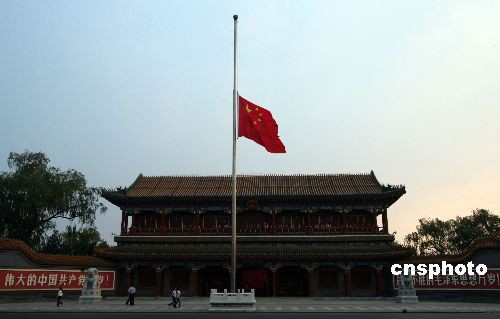 “此時此刻,太陽剛剛升起,我們在這里進(jìn)行降半旗儀式,以悲痛的心懷和悲壯的情結(jié)哀悼在汶川大地震中遇難的親人、同胞!鼻啻ㄖ袑W(xué)校長李生波用帶有四川方言的普通話主持了降半旗儀式。